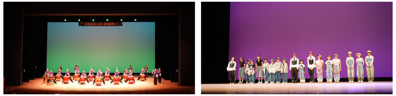 桐生市の清桜高校和太鼓部による30分間の演奏は圧巻でした。大きな音に体が震えるようで、会場全体が一体になりました。続いてココロのキッズチームBLINKELEとBRATZ、先生方のグループEmotionなどがHIPHOPを披露。小さなお子さんは一生懸命でとてもかわいらしく、先生方はキレのあるダンスで元気を届けてくれました。